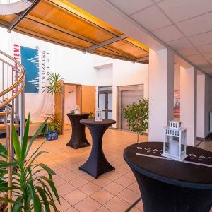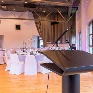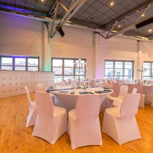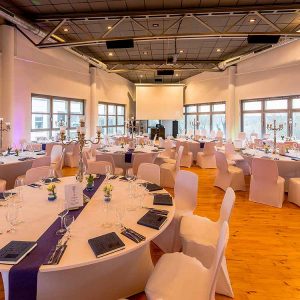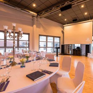 Die helle und freundliche Location befindet sich in luftiger Höhe und bietet einen schönen Ausblick auf die Umgebung. Der Veranstaltungsraum kann flexibel bestuhlt und gestaltet werden, Bar und Tanzfläche sind vorhanden, auch Tagungstechnik ist verfügbar. Für ein festliches Dinner finden 150 Personen Platz, bei einem Stehempfang sind es maximal 400.
