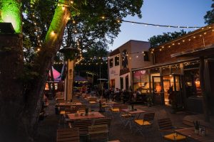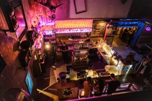 Der Biergarten bietet zusammen mit der angrenzenden Eventfläche flexible Nutzungsmöglichkeiten, die sich je nach Eventgröße entweder separat oder kombiniert nutzen lassen. Der Klub und die Bar erstrecken sich über zwei Etagen in einer umgebauten ehemaligen Tankstelle. Besonders bemerkenswert ist der offene Raum an der Hauptbar, der sich nahtlos über beide Etagen erstreckt. Das Interieur präsentiert sich in einem industriellen Stil, der durch die Kombination von gemütlichen Loungemöbeln und naturnahem Dekor belebt wird. Diese Mischung schafft eine einzigartige Atmosphäre, die alles andere als langweilig ist.
