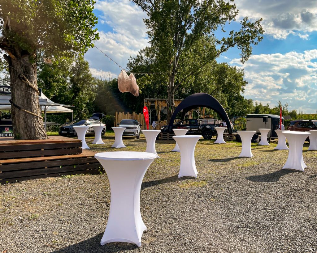 Die Location bietet großzügige Außenflächen mit flexiblen Gestaltungsmöglichkeiten. Je nach Eventformat können unterschiedliche Zonen für Empfang, Catering, Bühne, Lounge oder Aktionsflächen realisiert werden. Mobile Infrastruktur wie Bühnen, Zelte, Überdachungen, Licht- und Tontechnik lässt sich individuell integrieren und auf das jeweilige Veranstaltungskonzept abstimmen.