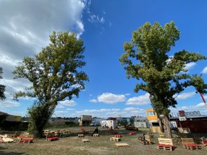 Urbane Atmosphäre trifft auf grüne Stadtidylle. Umschlossen vom Industriecharme der Alten Wollkämmerei befindet sich auf über 4000qm die Open Air Location der Wolkezwei.